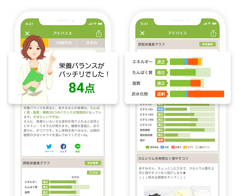 記録された食事・運動の内容に応じて、あなたに合った管理栄養士監修のアドバイスが届きます。